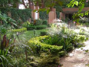 AFTER: irrigating the front garden Posted on May 31, 2011 by Cindy at enclos*ure We experimented with timed irrigation. This is the front garden looking back to the front gate.
