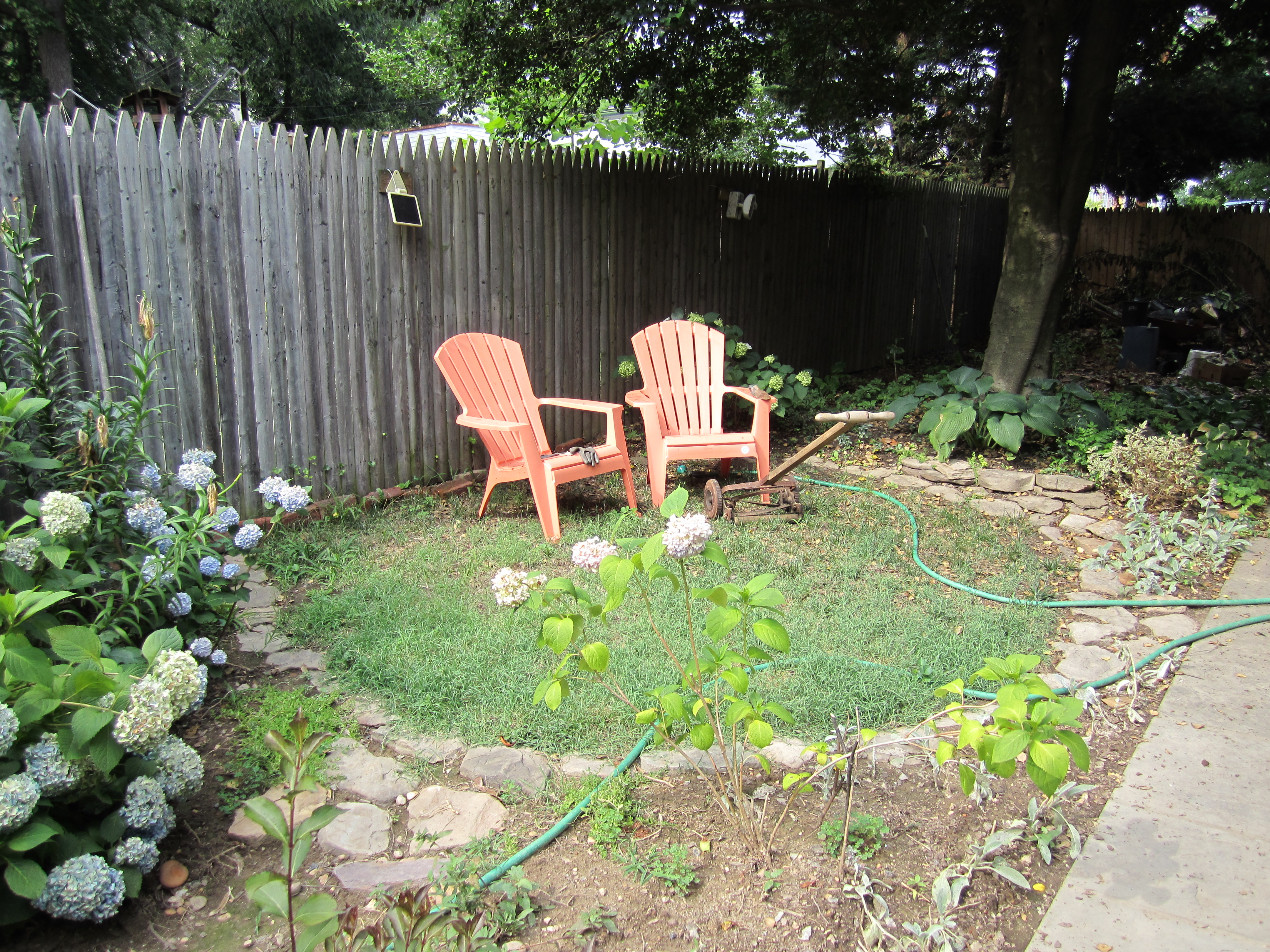 It’s not that we have very much lawn — quite the contrary as you can see from the photos below. It’s that we live in an attached rowhouse and the only way to get from the front yard to the back, or vice-versa, is go through the house (or around the block).