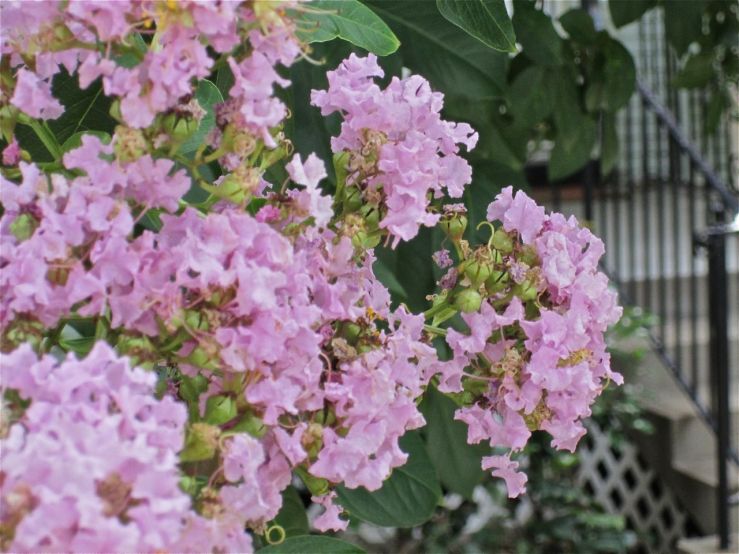 My lilac crape myrtle menacing joggers on the sidewalk.