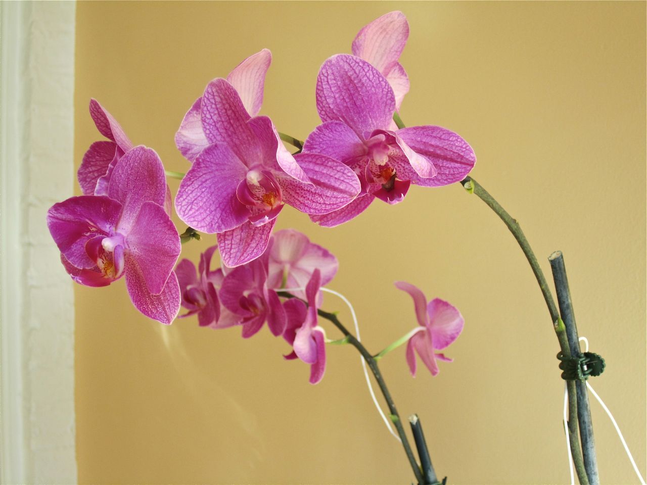 Do inside plants count?  No credit to me, though.  Thank goodness for Whole Foods orchids.  I’m very proud of my light orange accent wall, by the way, which I recently painted.  The color is called ‘Baby Duck’, although I don’t know why; there’s no yellow in it.