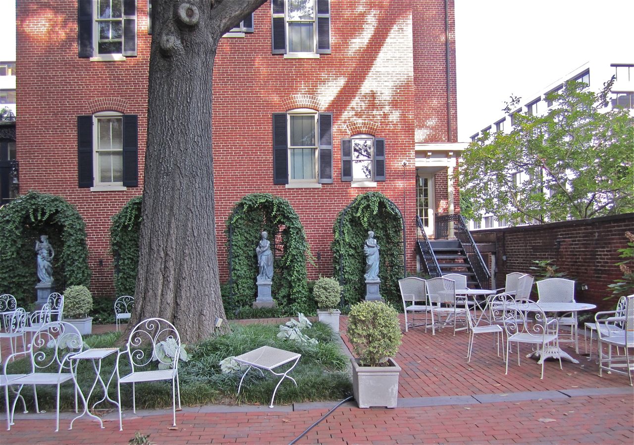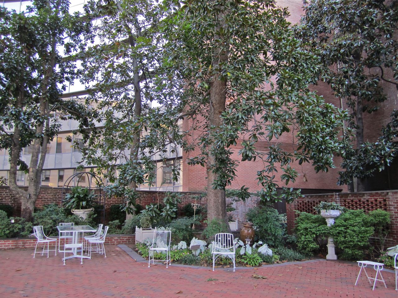 DACOR-Bacon House garden walled off from busy F Street.  Unfortunately, it was too hot that evening for the event to be held outside, so the chairs are a little scattered.