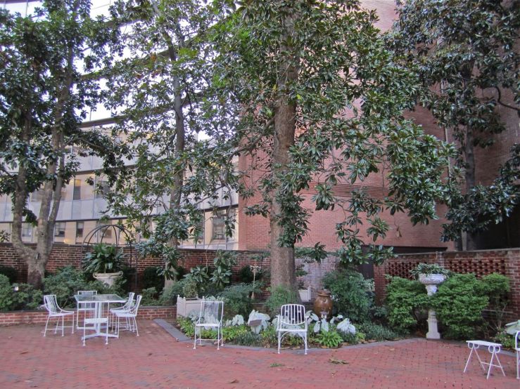 I was told that Mrs. Bacon spotted the garden’s huge willow oak  in the nearby town of Silver Spring about 65 years ago.  She was so taken with it that she bought it and had it dug up and trucked to 18th and F Streets, then hoisted over the garden wall by crane.