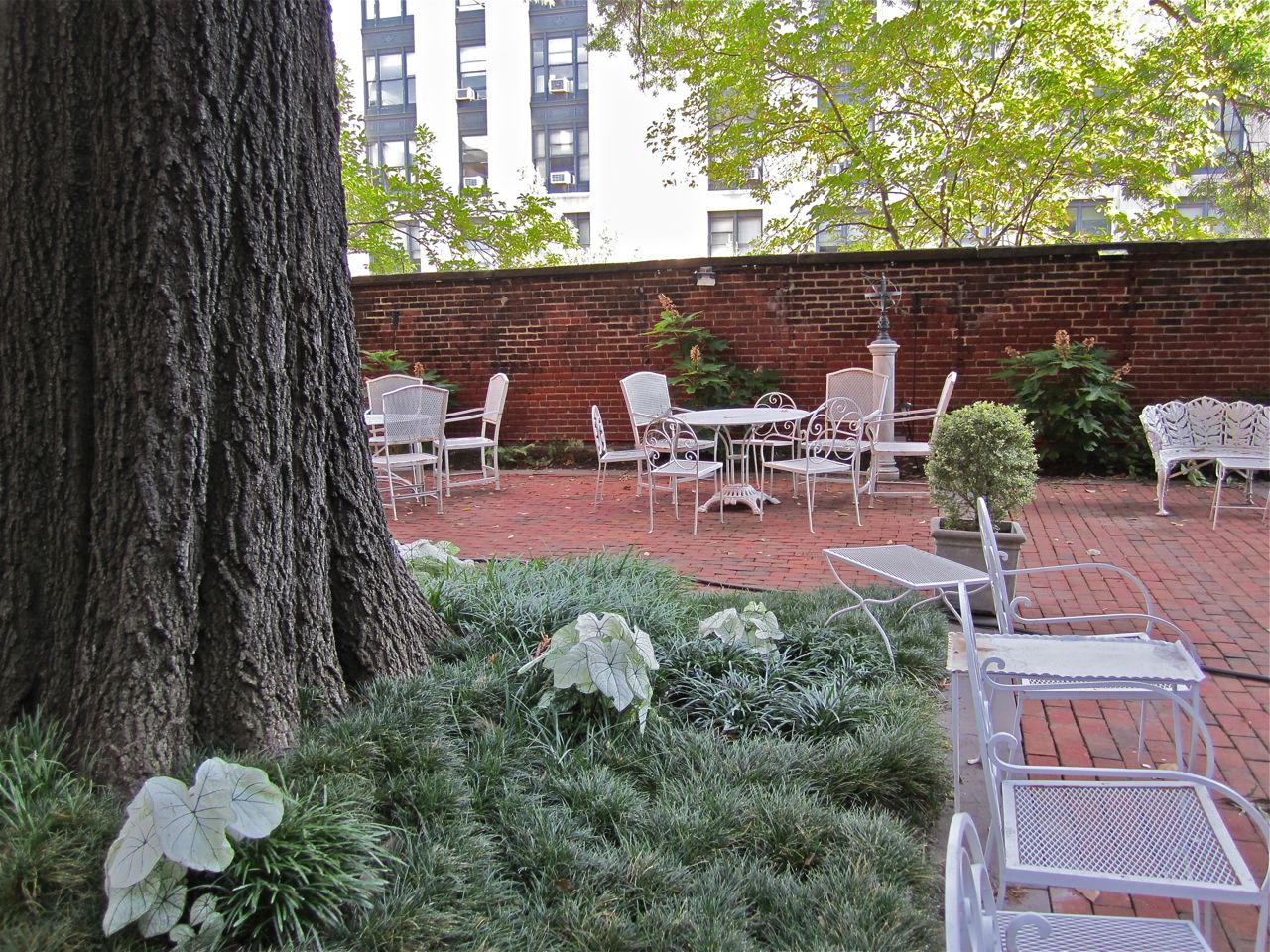 On Wednesday evening, I attended a reception there and was able to spend a little time in its nice walled garden — a serene, old-fashioned place in the midst of tall modern office buildings.