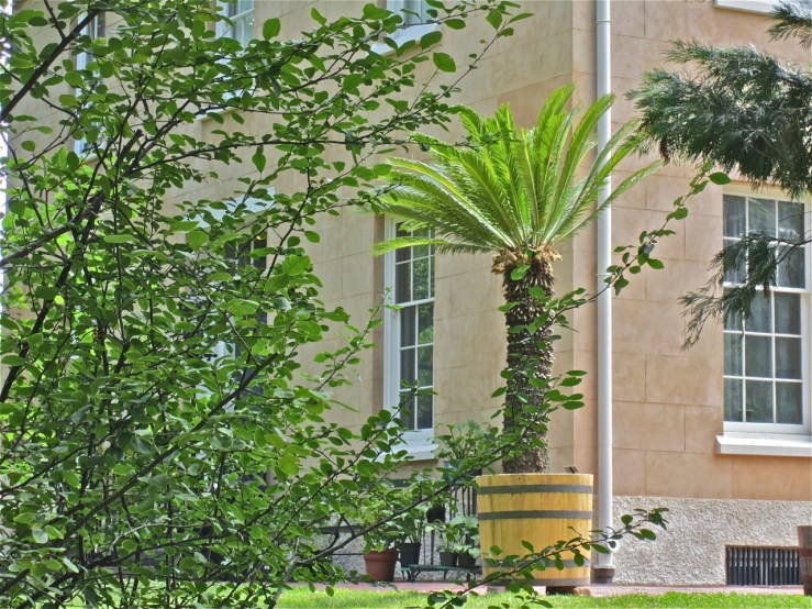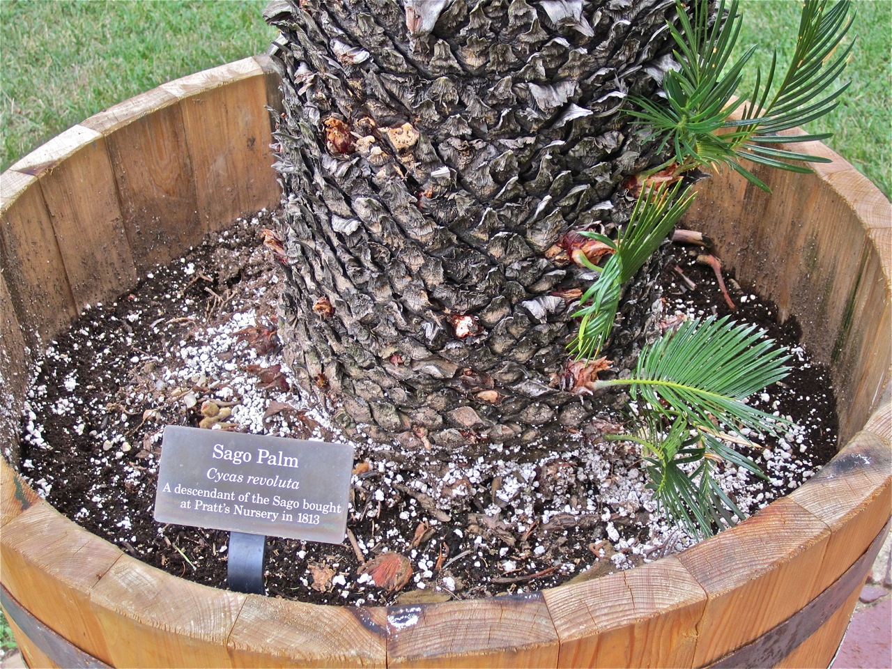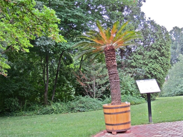 The Tudor Place blog says that the original sago palm is located near the door to the Visitors Center, although I only saw the specimens labeled as its descendants.