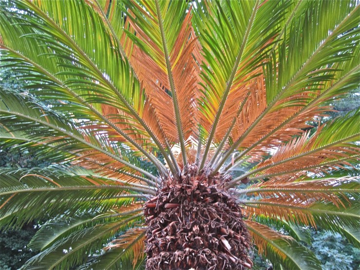 That made me remember some beautiful, rather ancient sago palms that I photographed at Tudor Place in Georgetown this summer. The sago palm is a cycad — Cycas revoluta — native to southern Japan.