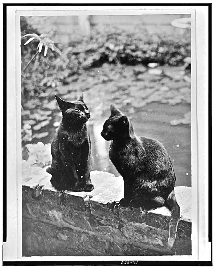 Johnston’s cats, Hermin and Vermin, seated on the brick railing of her New Orleans house.