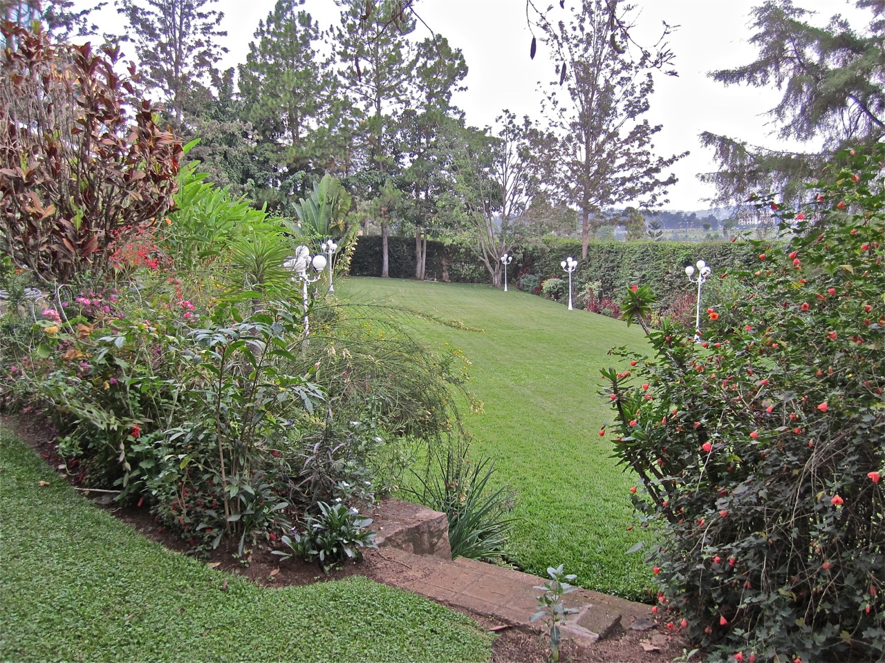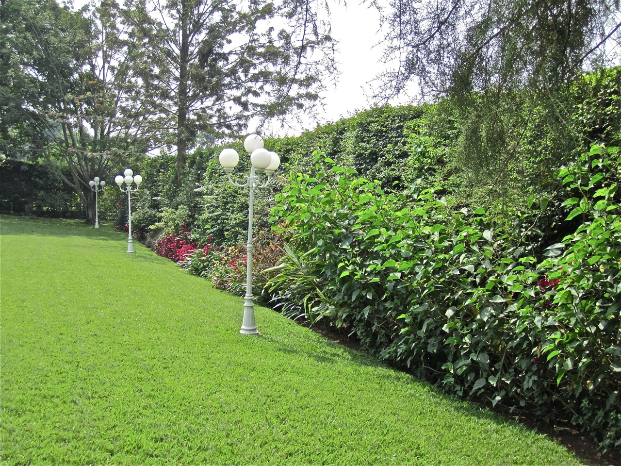 Above is a view of the lawn from one end (at the steps just to the left of the flagpole base in the earlier picture).  When we entertain large groups, the embassy puts up one or two tents in the center of the lawn.