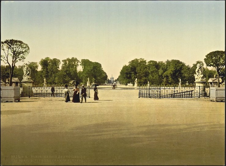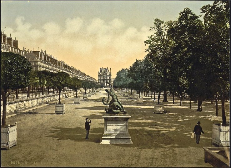 The Tuileries Garden.  Its name came from the tile makers (tuileries) who were removed  from the site on Catherine de Medicis’s orders so that she could build a (later-destroyed) palace and grounds.   The palace garden was redesigned in the 17th century by André Le Nôtre for Louis XIV.