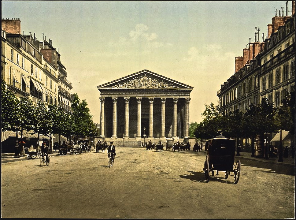 Rue Royale and Place de la Madeleine. This church is dedicated to Mary Magdalene. Its construction began in 1764, but it was not consecrated until 1845.