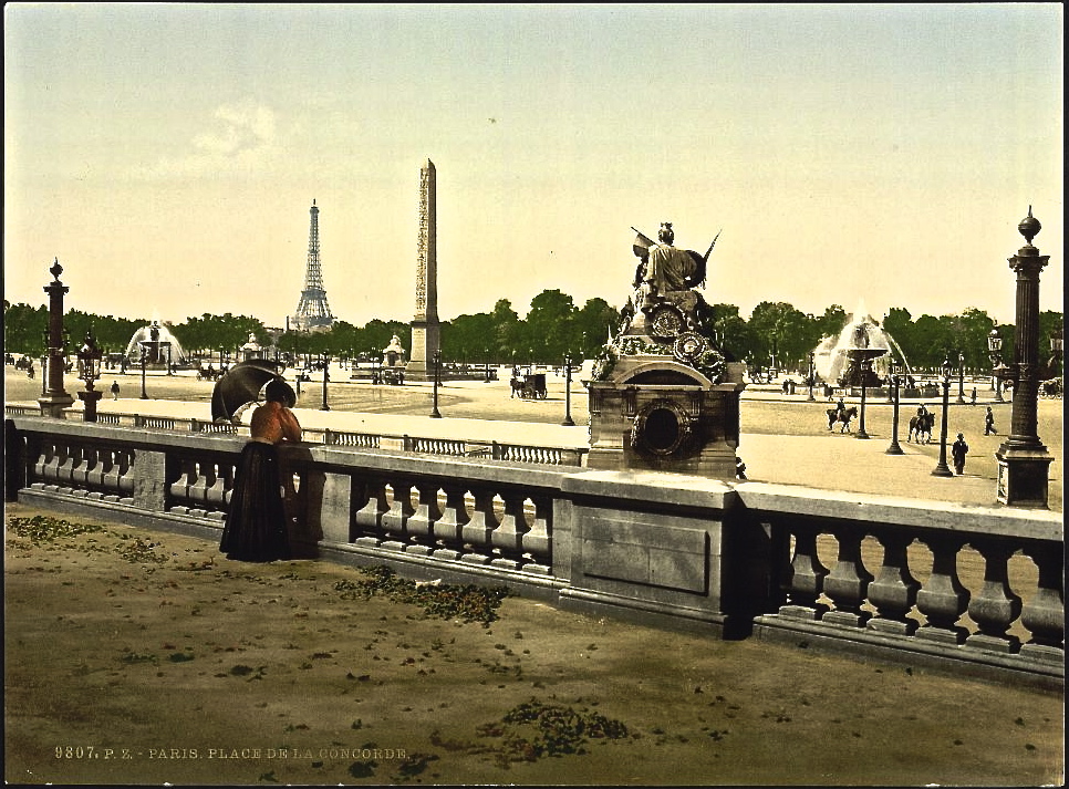 Place de la Concorde.  During the revolution, the guillotine was placed here and took over a thousand lives. Later, the space was named la Concorde in a gesture of reconciliation. Since 1833, its central feature has been the 3,200-year-old obelisk from Luxor, Egypt.