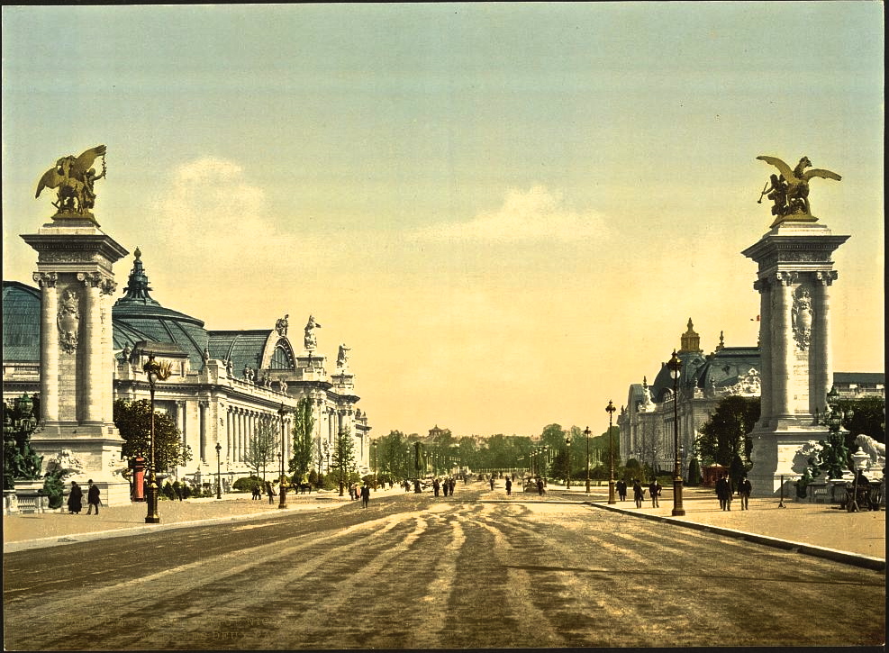 Ave. Napoleon III (now Ave. Winston Churchill) and the Grand Palais (left) and Petit Palais (right). The two display halls were built between 1896 and 1900 for the Universal Exhibition of 1900.