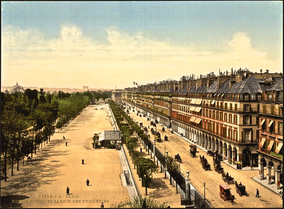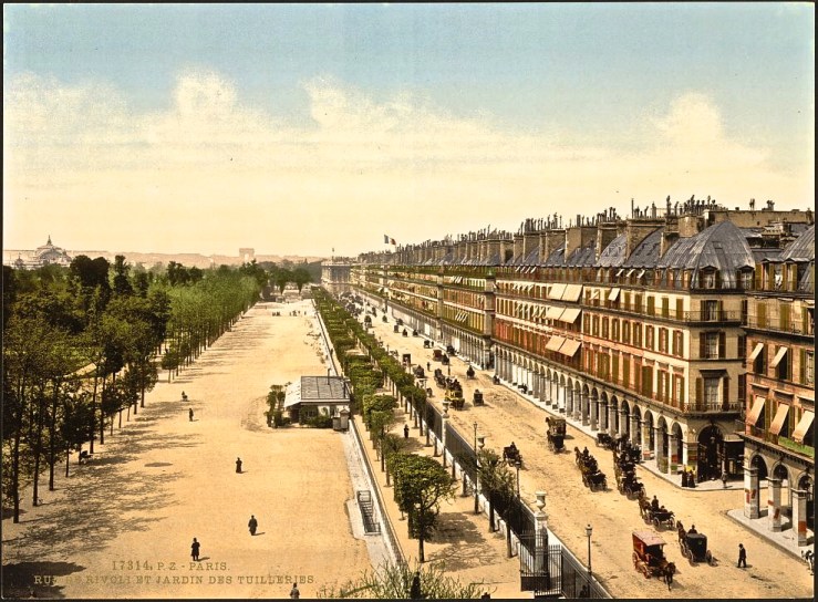 Rue de Rivoli. The arcades and shops along the street were built between the early 18th century and the 1850s.