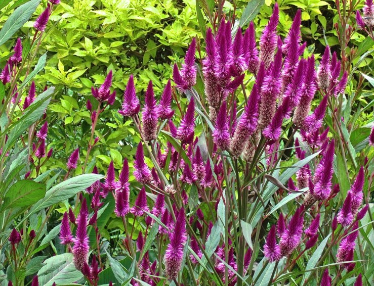 The genus Celosia is a member of the amaranth family.  The name comes from the Greek word kelos, meaning ‘burned’ — referring to the flame-shaped and colored blooms.  Most sources I looked at gave the genus’s probable origin as Africa.