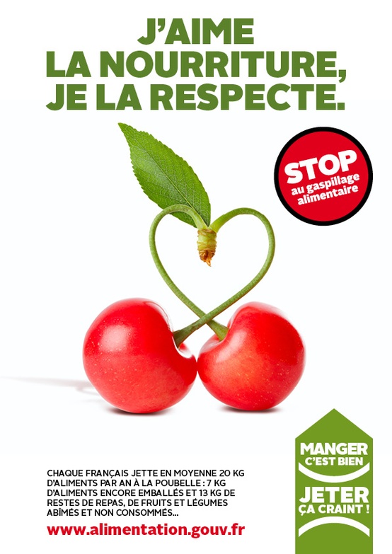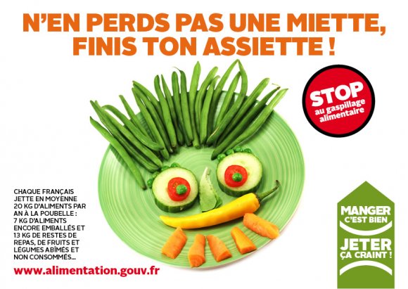 Chaque Français jette . . . “Every French person throws an average of 20 kgs. of food in the trash can each year.”