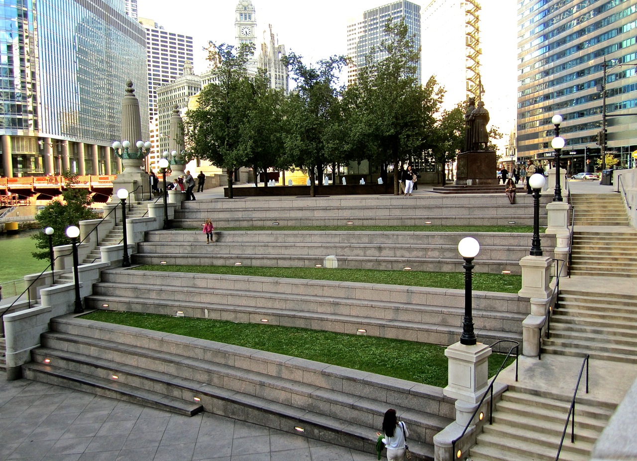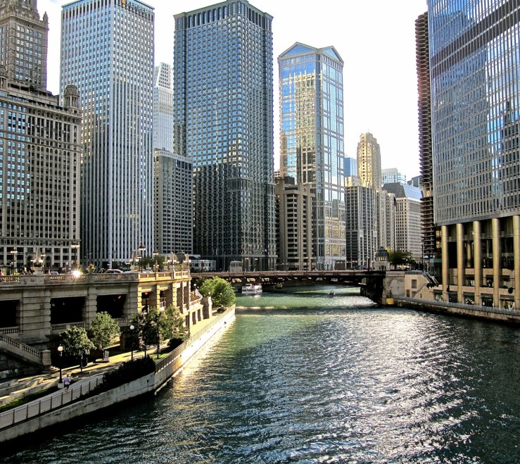 The Chicago River, with its Riverwalk,  is the best landscape in the city.  I think the skyscrapers are thrilling.