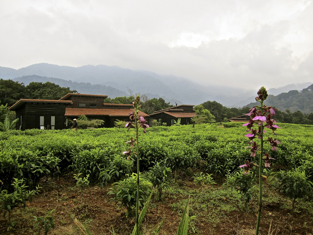 The Lodge is located on the western edge of the Nyungwe National Park in a tea plantation picked by a local cooperative. The cabins front to the tea fields and their back windows look out on the forest.