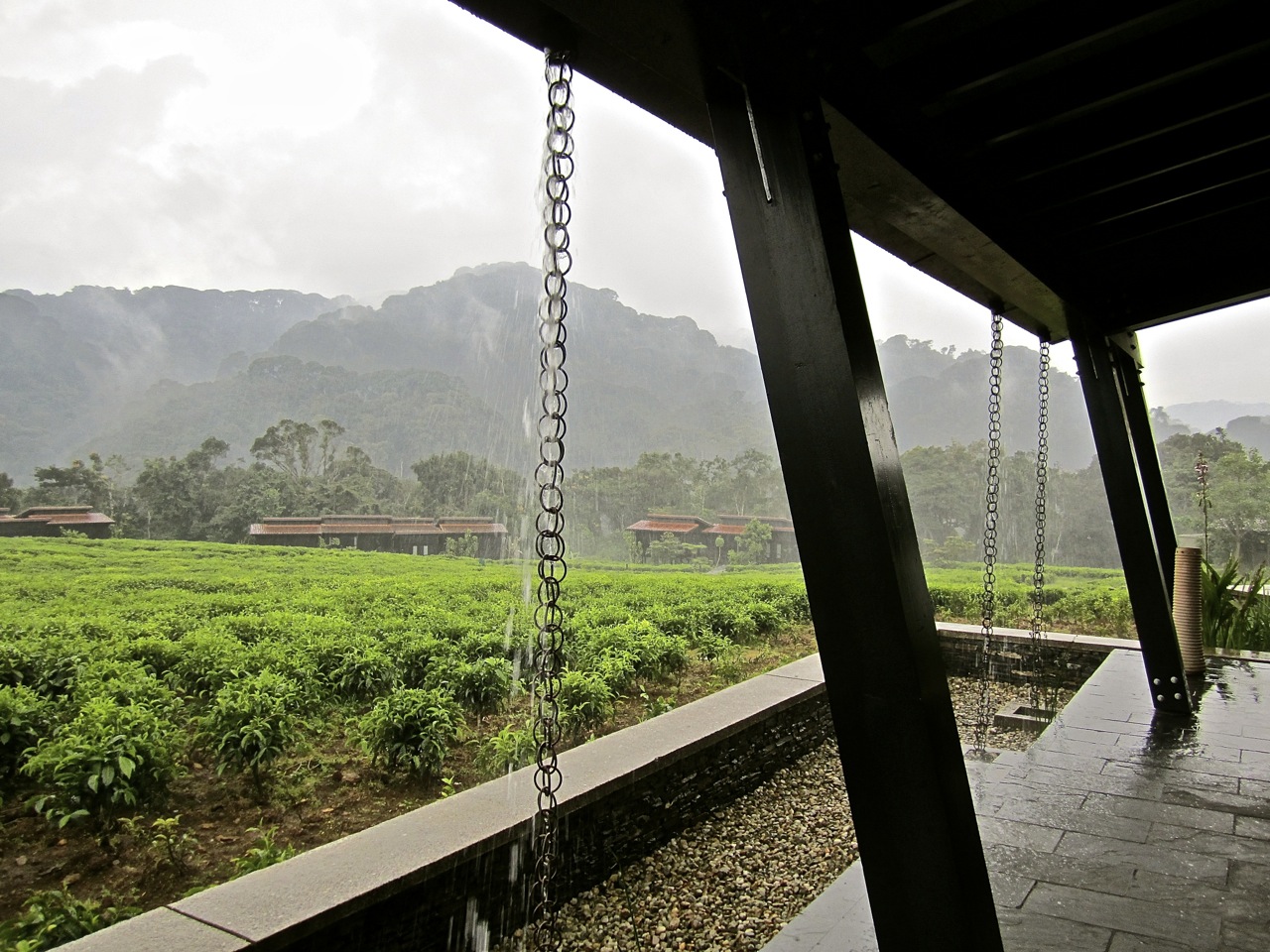 Camellia sinensis leaves have little or no smell (only if you crush them hard) until they are processed as tea. But the hotel smelled very lightly of green tea fragrance from the soap and hand lotion in the bathrooms and gift shop. So, sitting on the terrace or in the main lounge looking out, I could smell what I thought the fields should smell like (but really don’t). I thought this was an interesting little manipulation of experience in a landscape.