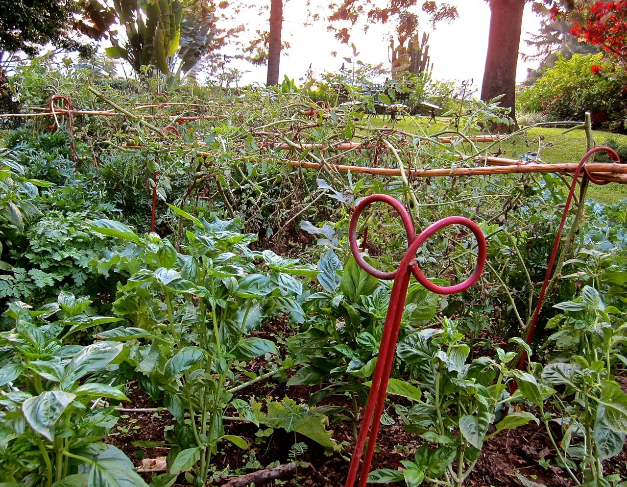 I can tie plants directly on to them, or I can slip bamboo poles through the loops to make a supporting grid. They’re much easier to push into the ground than bamboo or wooden poles, and they should last pretty much forever.