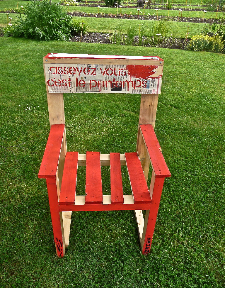 This is the message of a charming chair at the Ecole du Breuil in Paris.  The photo is by Alain Delavie* from his blog Paris côté jardin (Paris  garden side).
