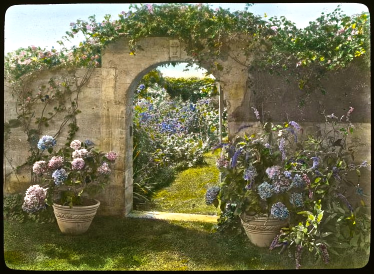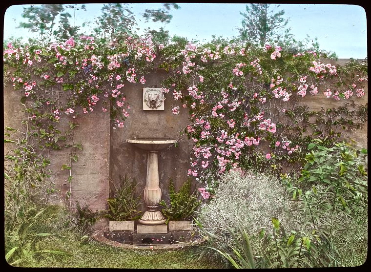 Having grown up spending summers on that part of Long Island, I find it incongruous to have such a garden nestled among the sand dunes. I like to remember the sand dunes as wild, empty places – the formality of Grey Gardens clashes with the wild, windswept natural setting. Nevertheless, the garden in the lantern slides is beautiful. I have seen photos of the garden since Ben Bradley and Sally Quinn restored it, continues to be a beautiful garden. No doubt, all the elements of Grey Gardens – Anna Gilman Hill, Frances Benjamin Johnston, the Bouviers, East Hampton, the Maysles brothers 1975 documentary, Ben Bradley and Sally Quinn – contribute to its unique place in American garden history.