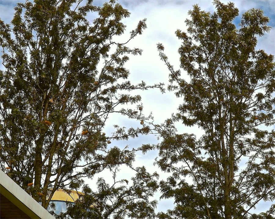 I estimate that they built two to three dozen nests, mostly in the tree on the left below.