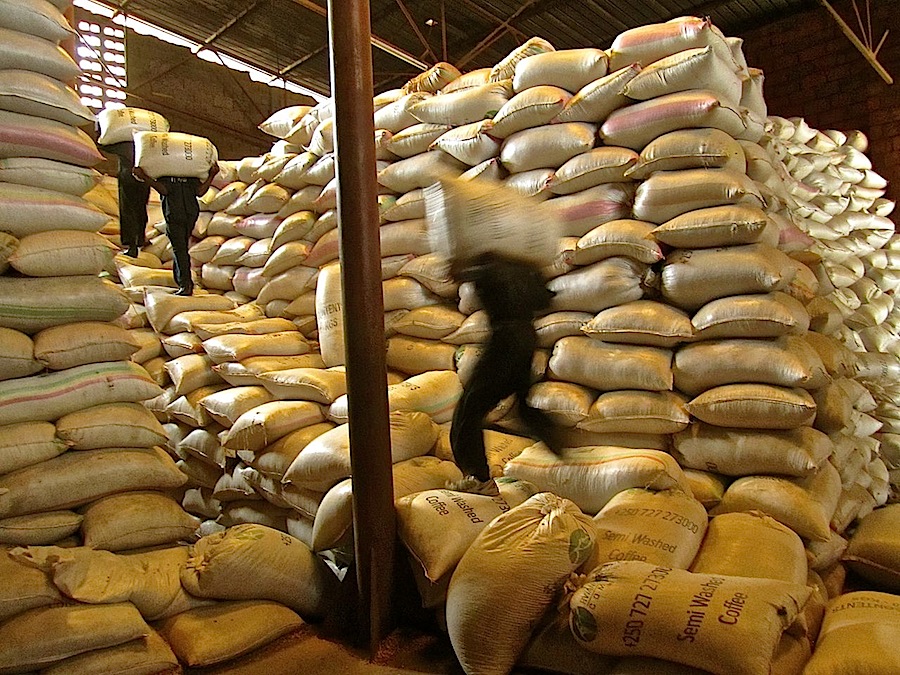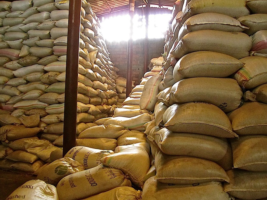 Parchment coffee, Rwanda Trading Company:enclos*ureThe sacks are full of “parchment” coffee — dried, but unhulled beans.