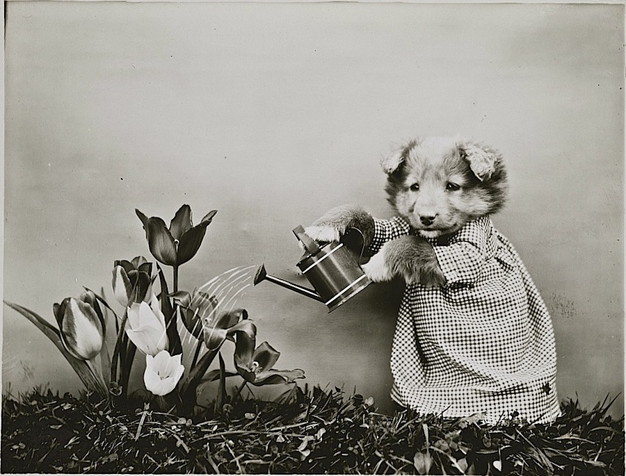 “Watering the flowers,” c. 1914, by Harry Whittier Frees, via Library of Congress Prints and Photographs Division (both photos).