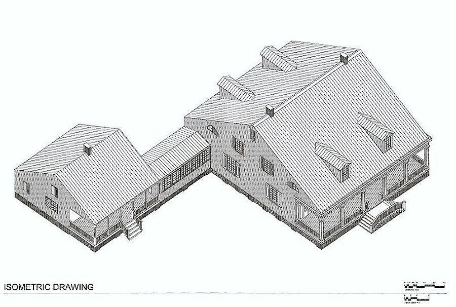 Drawing by Max Miller of the entire Palo Alto Plantation House, 2003, HABS, via Library of Congress.