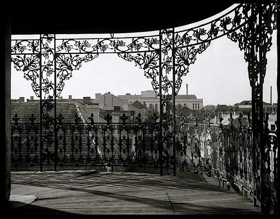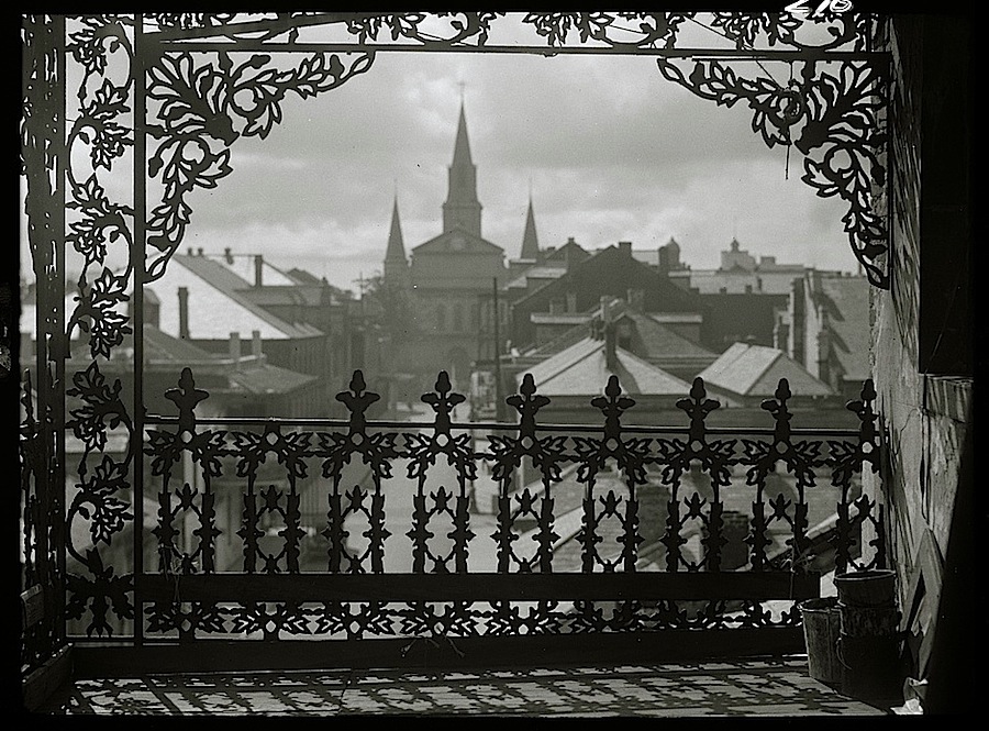 “A vista through iron lace, New Orleans,” ca. 1920-26, by Arnold Genthe, via Library of Congress Prints and Photographs Division.