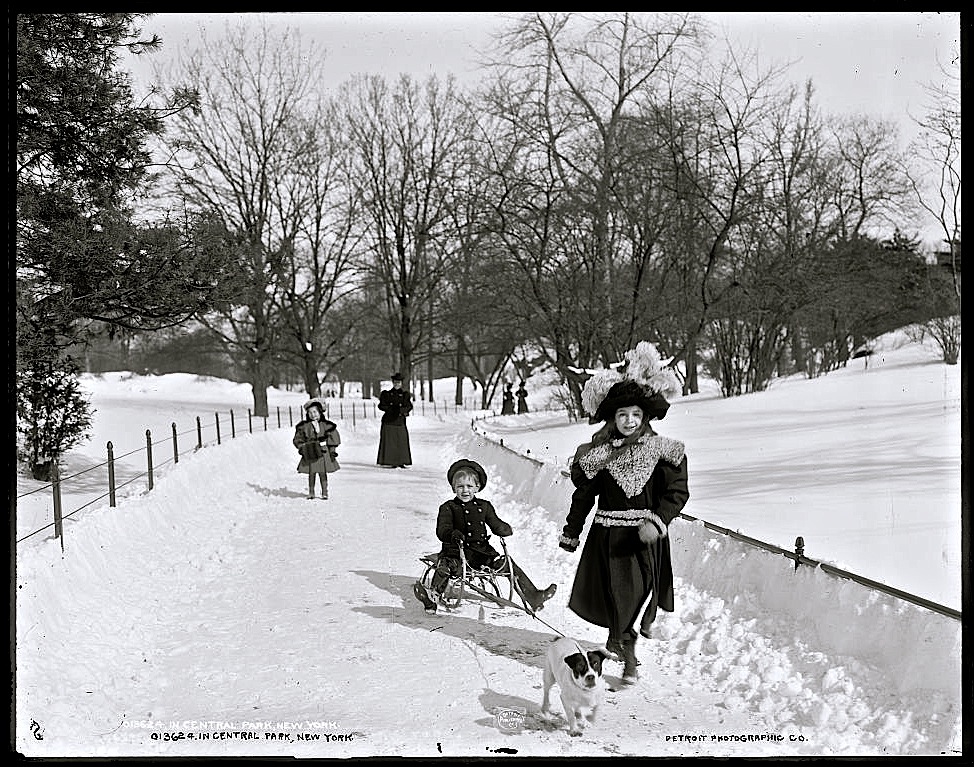 Vintage landscape/enclos*ure: snow in Central Park, c. 1900, via Library of Congress“In Central Park, New York,” ca. 1900, by Byron, Detroit Publishing Co., via Library of Congress Prints and Photographs Division.