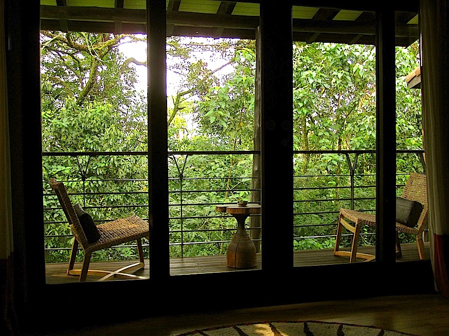 Nyungwe Forest Lodge/enclos*ureAbove: each cabin’s back balcony looks out into the rain forest.  The land drops down very steeply about six or seven feet behind the cabins, so their windows really look into the tops of trees. It’s not uncommon to see monkeys there.