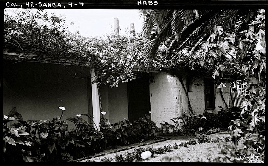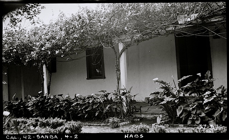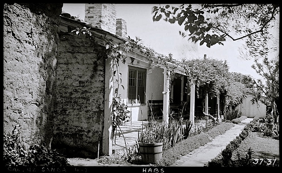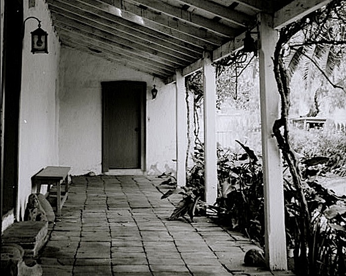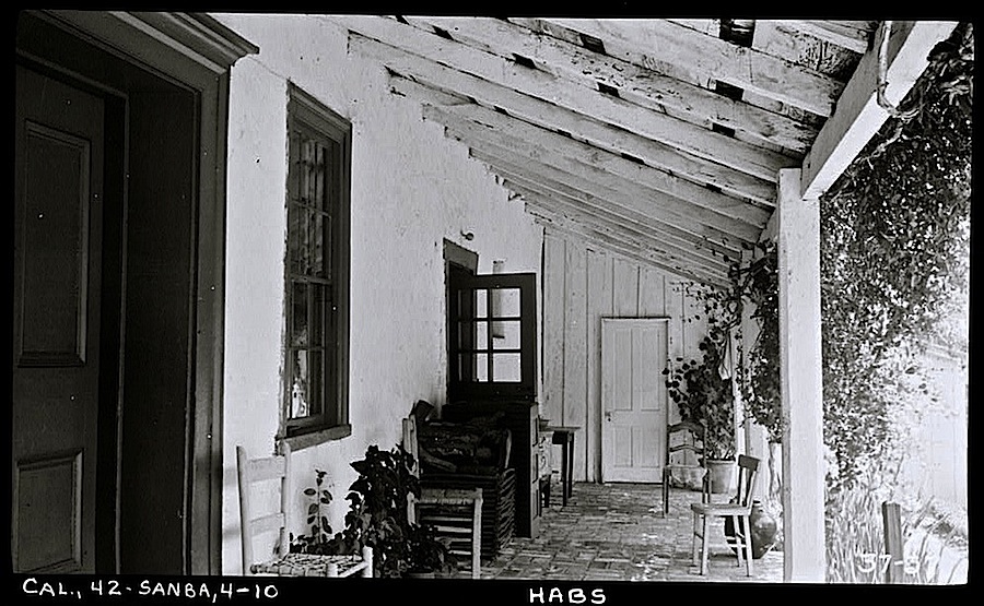 The north porch of the Vhay House, 835 Leguna Street, Santa Barbara, California, April 1934, by C. A. Fletcher for an Historic American Buildings Survey (HABS), via Library of Congress Prints and Photographs Division.*