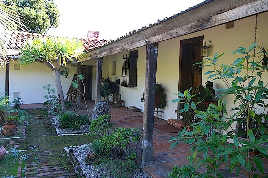The Rafael Gonzalez House, which was owned by Louise and David Vhay at the time of these photos, was built in 1825. It is a typical adobe townhouse of the Mexican California period, with walls over 2′ (.61 m.) thick.