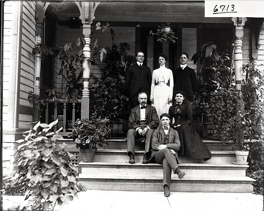 “Flower family on porch, ca. 1905,” by Frank R. Snyder, via Miami University Libraries Commons on flickr.