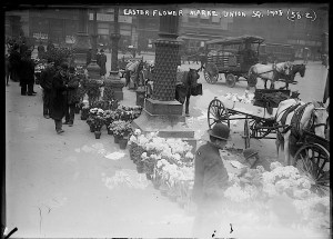 Vintage landscape/enclos*ure: buying Easter flowers, NYCity, 1908, via Library of Congress Posted on April 18, 2014 by Cindy at enclos*ure