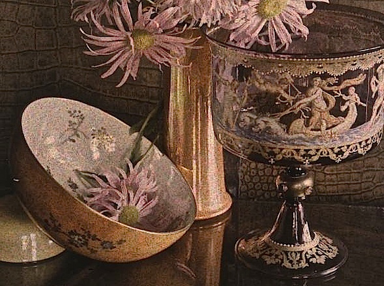 “Glass dish with classical figures, ceramic bowl and vase of flowers,” ca. 1915, an autochrome by H. Wormleighton, via George Eastman House Collection on flickr.