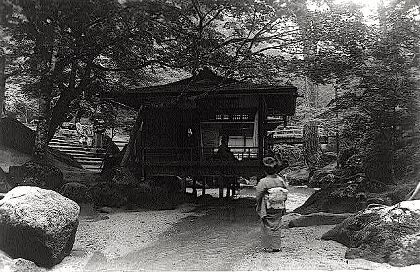 “Tea house in a woodland, Itsuku-Shima, Japan,” between 1890 and 1923, photographer unknown, via the Frank and Frances Carpenter Collection of the Library of Congress Prints and Photographs Division.
