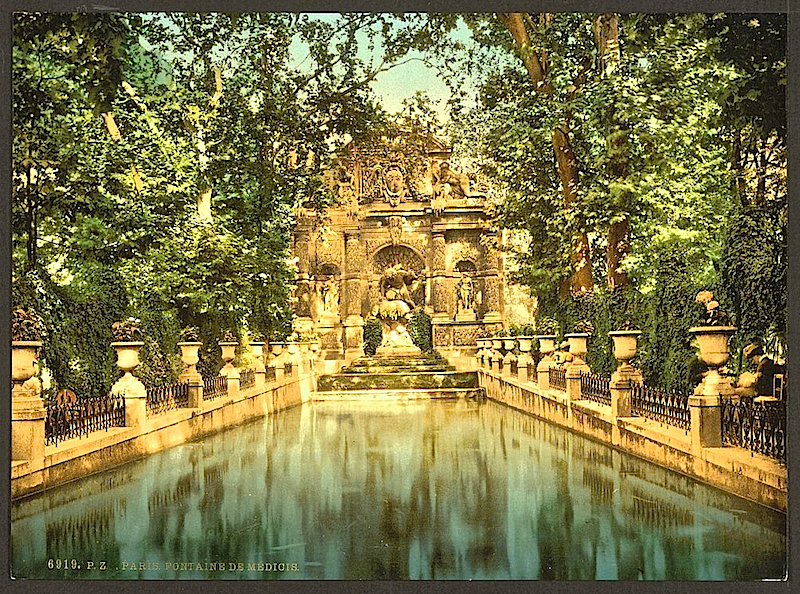 Medici Fountain, ca. 1900, Library of CongressThe Medici Fountain of the Luxembourg Gardens, Paris, France, between ca. 1890 and ca. 1900, a photochrom by Detroit Publishing Co., via Library of Congress Prints and Photographs Division.