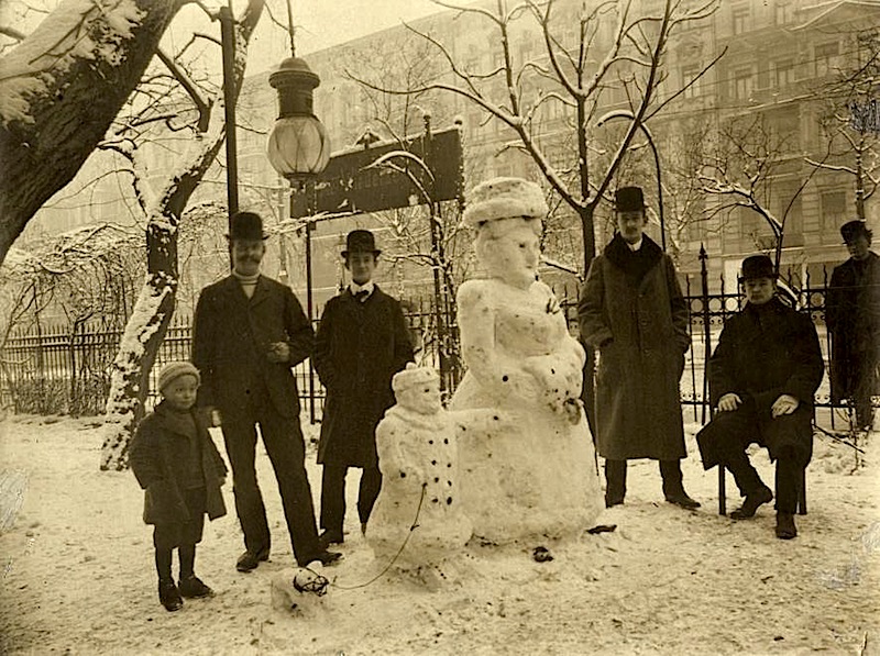 “The Dutch queen Wilhelmina and princess Juliana [and their little dog] as snowmen [or sneeuwpop],” January 21, 1913, The Netherlands, via Nationaal Archief Commons on flickr.