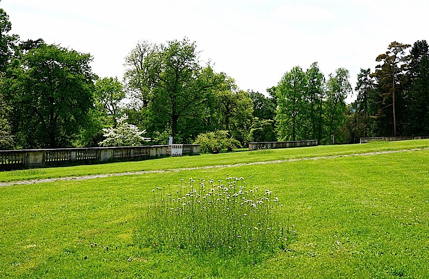 Hohenheim lawn 8, enclos*ure2) The front lawn of the 18th century schloss (palace) of Hohenheim (near our house in the southern suburbs of Stuttgart) — it’s part of the University of Hohenheim, which specializes in agriculture and natural sciences.