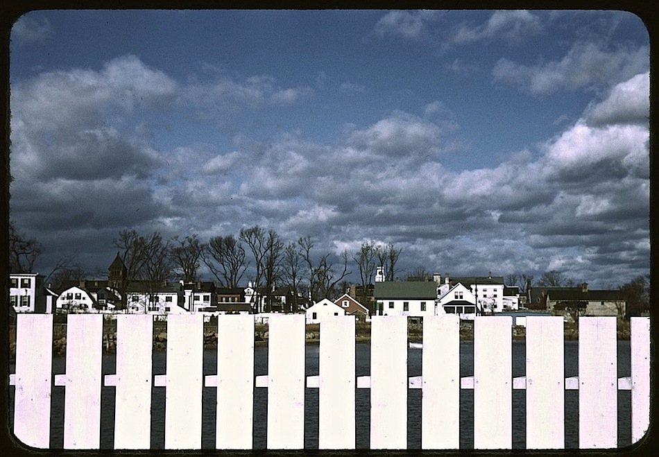 Picket fence and view of Stonington, Connecticut, November 1940, by Jack Delano, via Library of Congress Prints and Photographs Division.