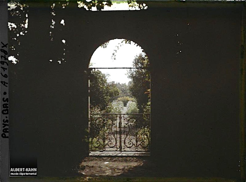 The autochrome above is one of about seventy-two thousand that were commissioned and then archived by Albert Kahn, a wealthy French banker, between 1909 and 1931. Kahn sent thirteen photographers and filmmakers to fifty countries “to fix, once and for all, aspects, practices, and modes of human activity whose fatal disappearance is no longer ‘a matter of time.'”* The resulting collection is called Archives de la Planète and now resides in its own museum at Kahn’s old suburban estate at Boulogne-Billancourt, just west of Paris. Since June 2016, the archive has also been available for viewing online here.