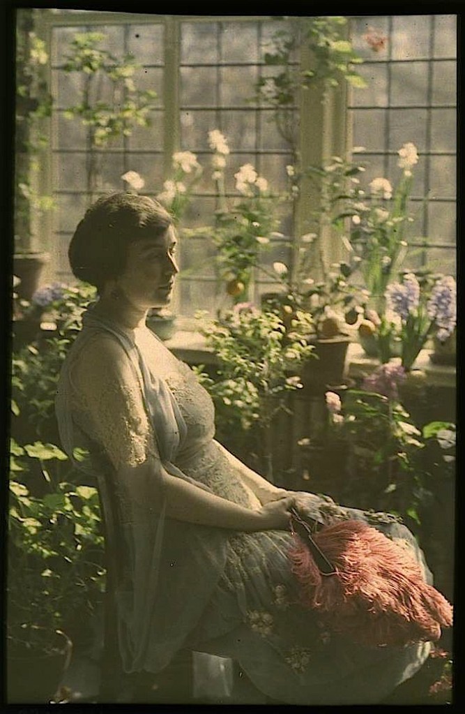 “Woman in greenhouse,” ca. 1910, an autochrome by Mrs. Benjamin F. Russell, via George Eastman Museum Commons on flickr.