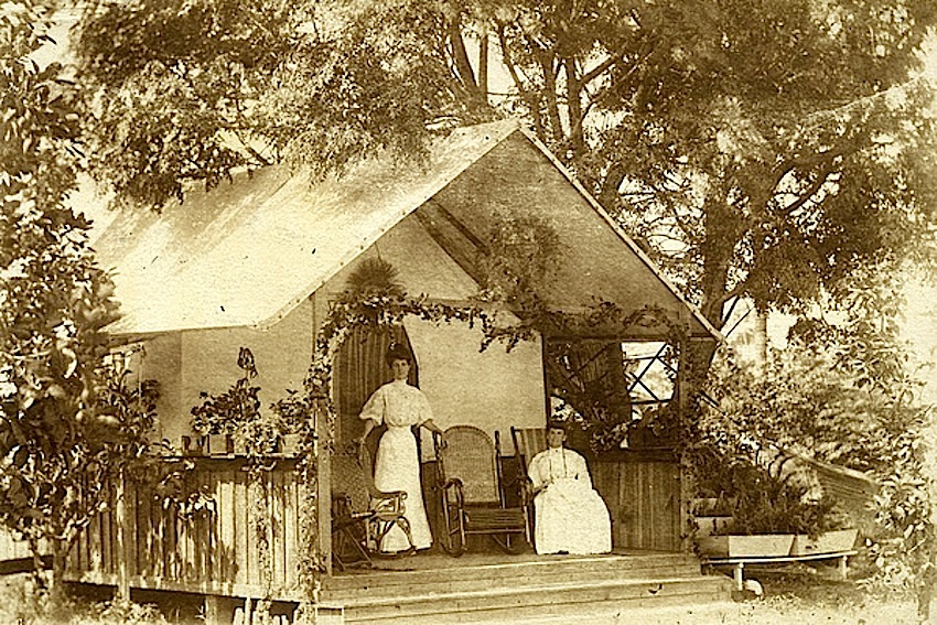 “Tent house on Koreshan property in Estero, Florida,” 1895, via Koreshan Unity Collection, Florida Memory Commons on flickr (State Library and Archives of Florida).