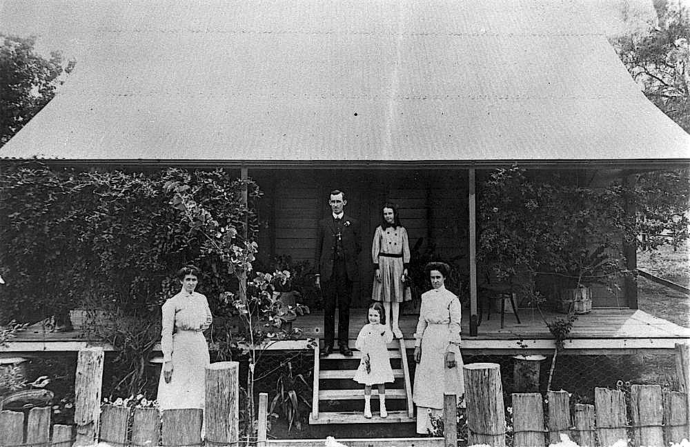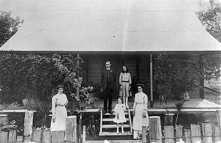 The Tambo family posing among the plants in front of their homestead of Malayta Hill near Nambour, Queensland, 1906, by A. W. Newbery, via State Library of Queensland Commons on flickr.
