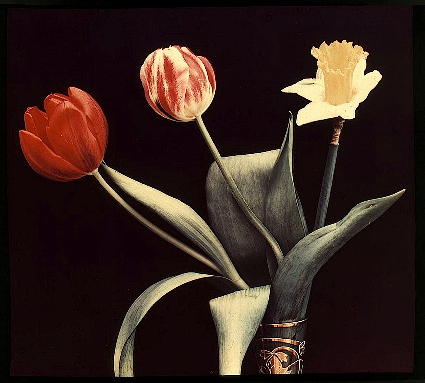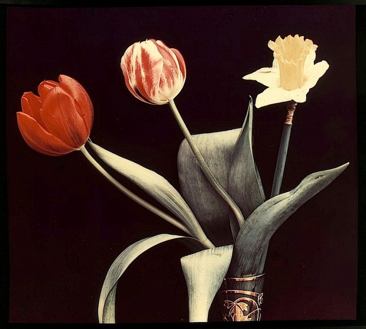 “Still life with motifs of tulips,” by John Hertzbert, an autochrome made between 1904 and 1935, via Tekniska Museet (Sweden) on flickr (used under CC license).
