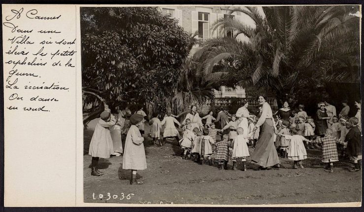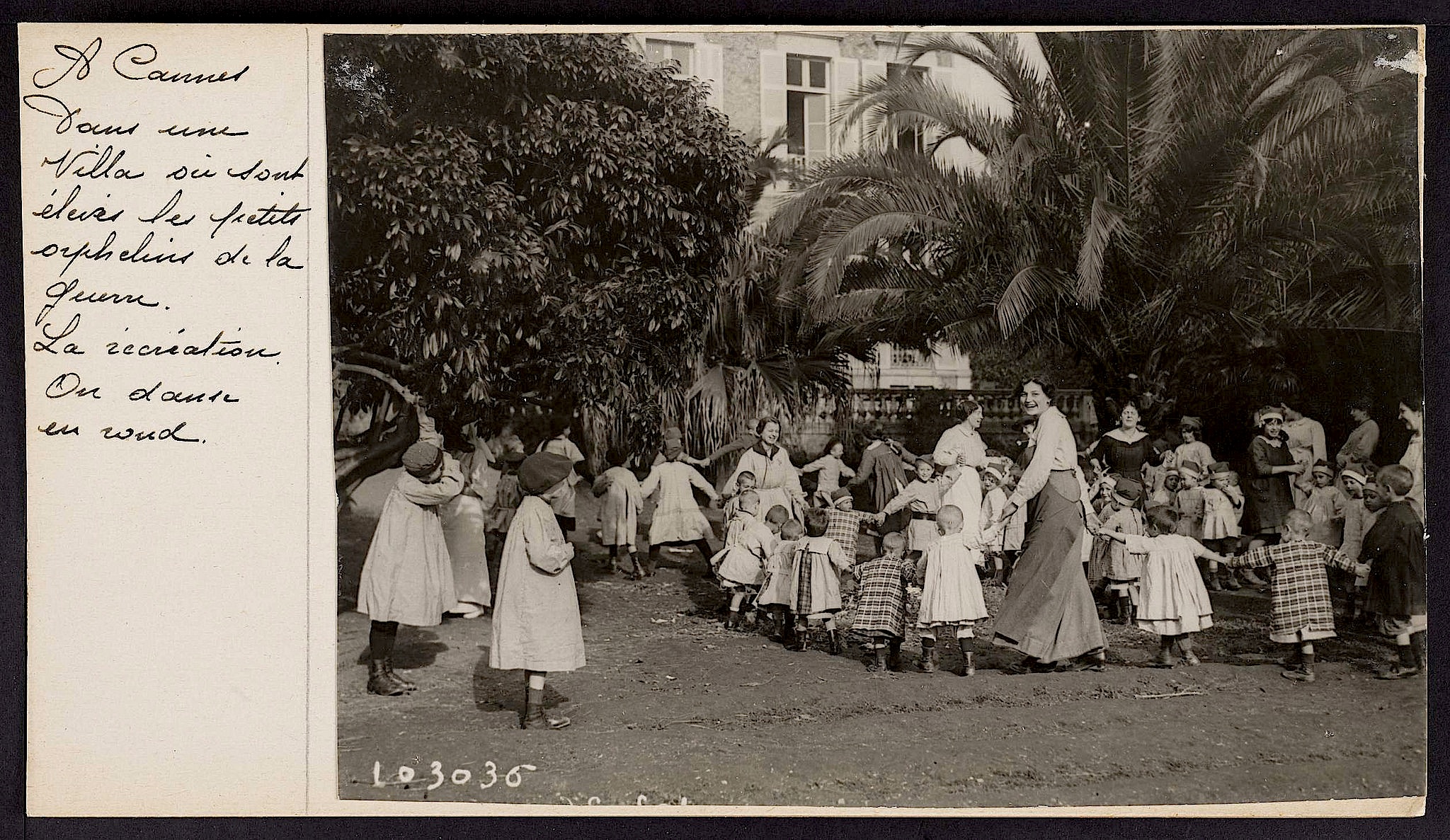 “At Cannes. In a villa where the little orphans of the war are raised. Recreational dance,” ca. 1914 – ca. 1918, photographer unknown, via the Université de Caen Basse-Normandie Commons on flickr.