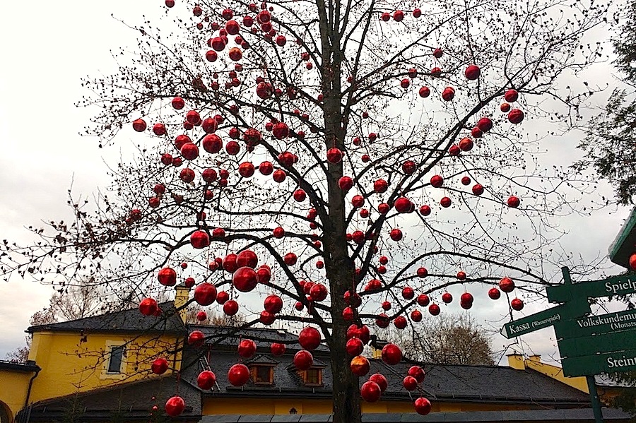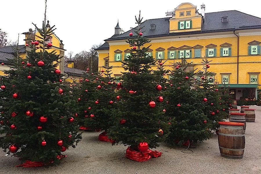 The Advent market of Hellbrunn Palace — just outside of Salzburg, Austria — is open from late November until Christmas Eve. Unfortunately, our guided city tour, which included a 15-minute stop at the palace grounds (otherwise closed during the winter) was on Christmas Day.