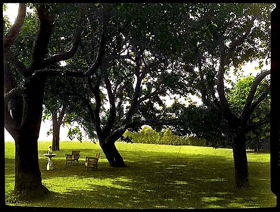 Bagatelle/enclos*ure Strolling in Bagatelle Park, Paris, France, ca. 1920, a hand-colored glass lantern slide by an unknown photographer, via Archives of American Gardens, Garden Club of America Collection, Smithsonian Institution (used here by permission).