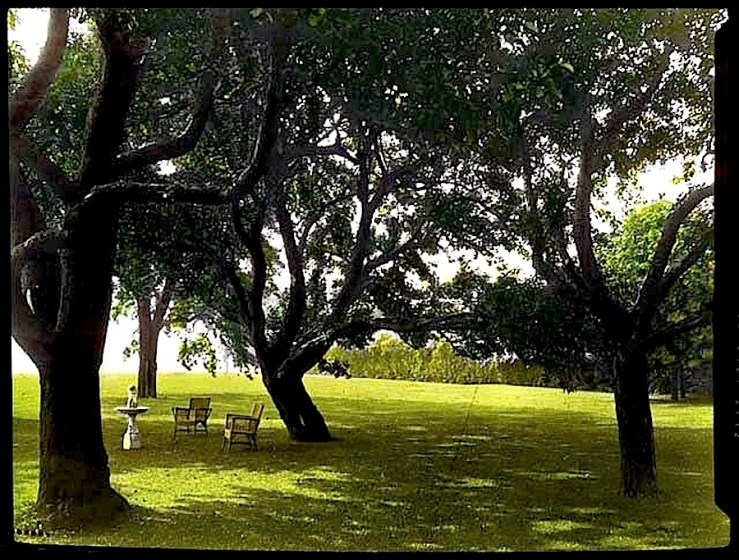 Another well-dressed lady in the same garden, also ca. 1920, an autochrome by an unknown photographer, via Photographic Heritage on flickr (under CC license).